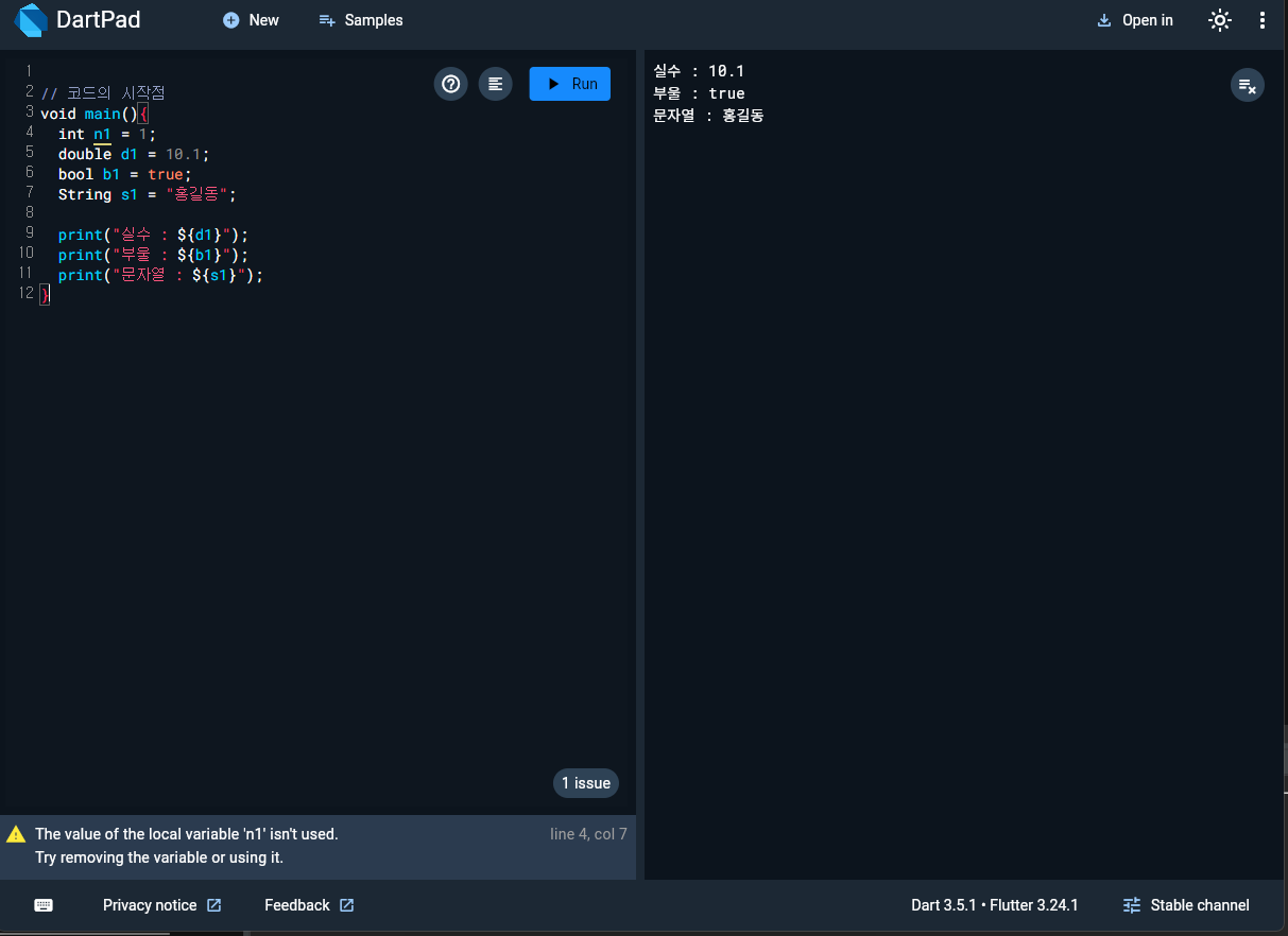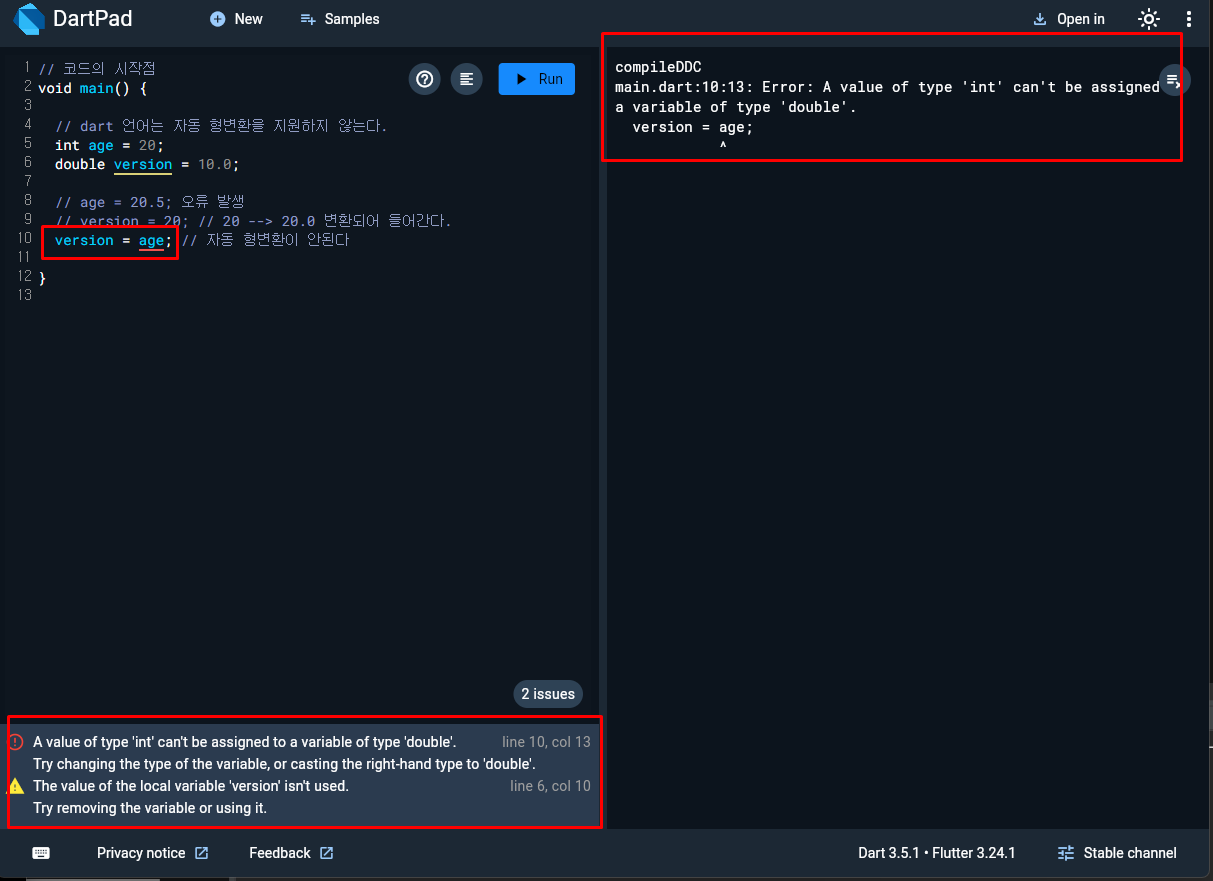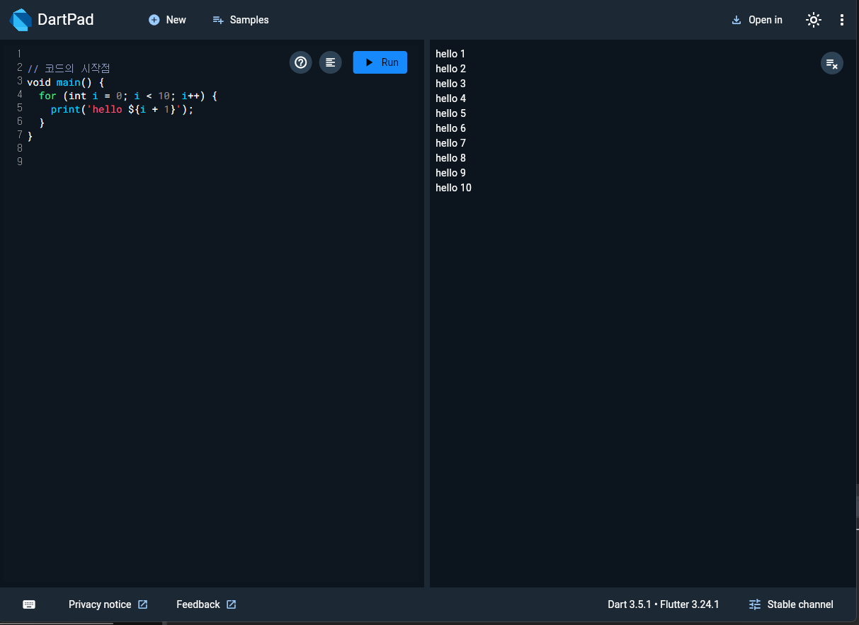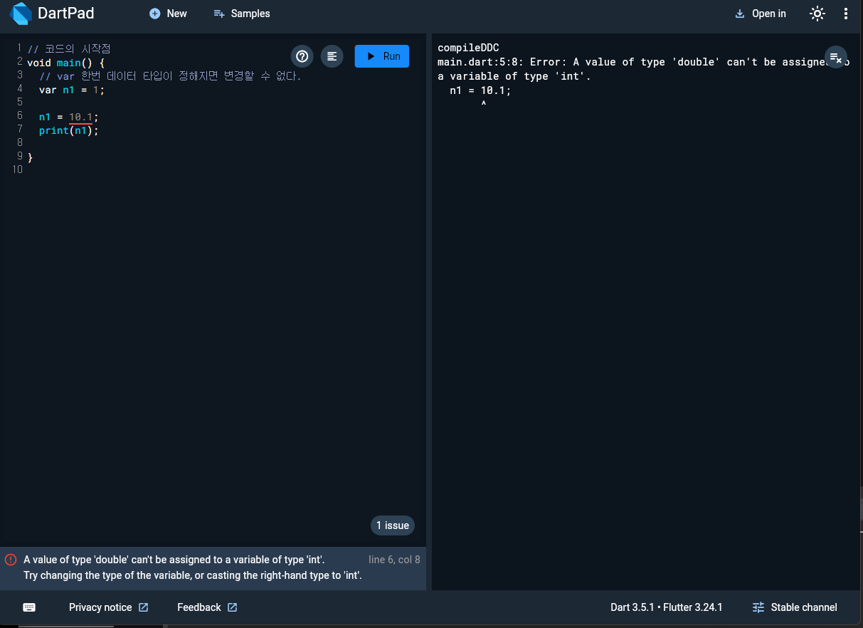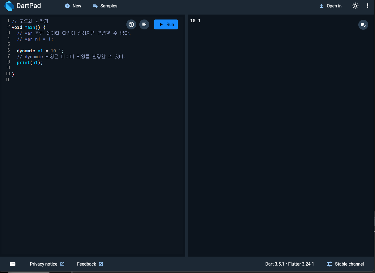 런타임에서 실행할 수 있는 중간언어로 변환후 다트위 가상머신을 통해서 중간언어를 실시간으로 번역